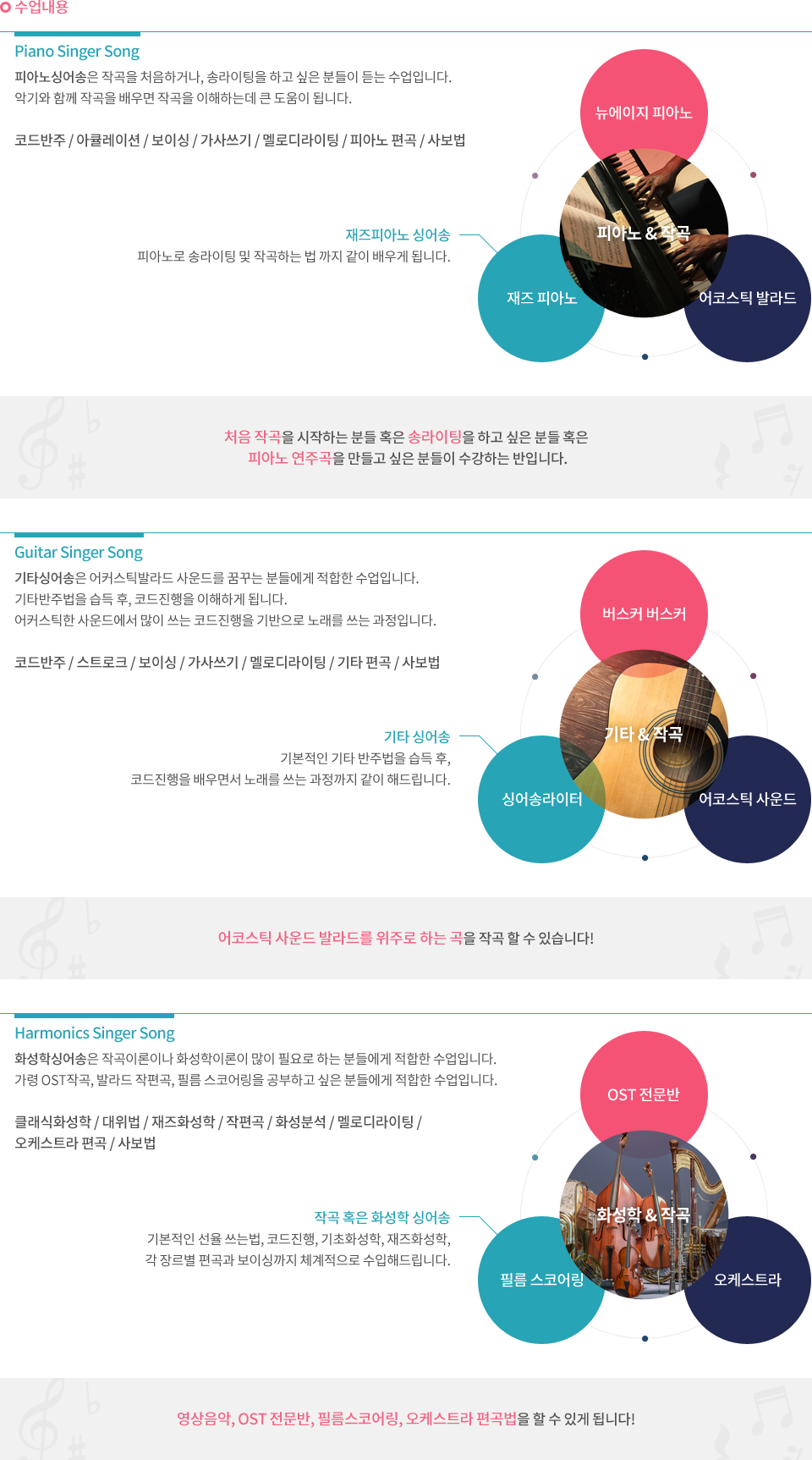 피아노와 작곡, 기타와 작곡을 혹은 화성학과 작곡을 한 시간 안에 동시에 배운다!!