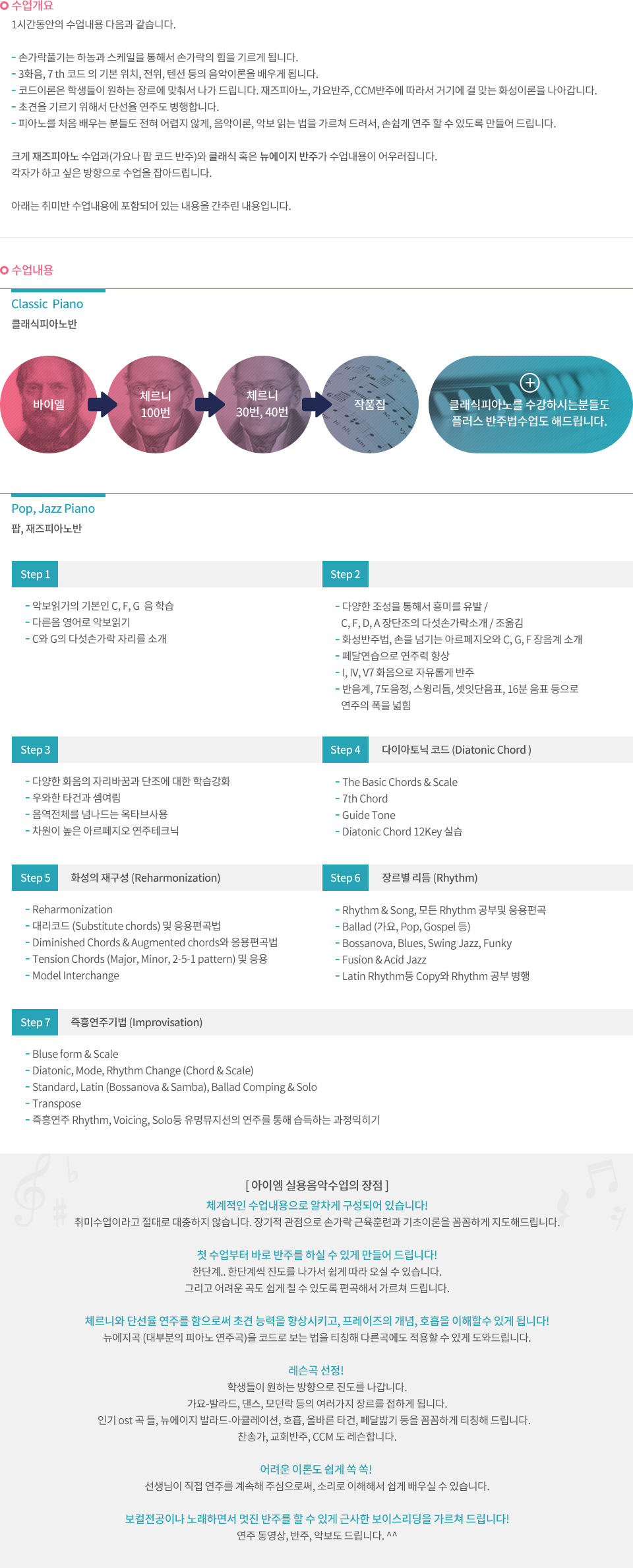재즈피아노, 클래식피아노를 동시에 배우실 수 있습니다.