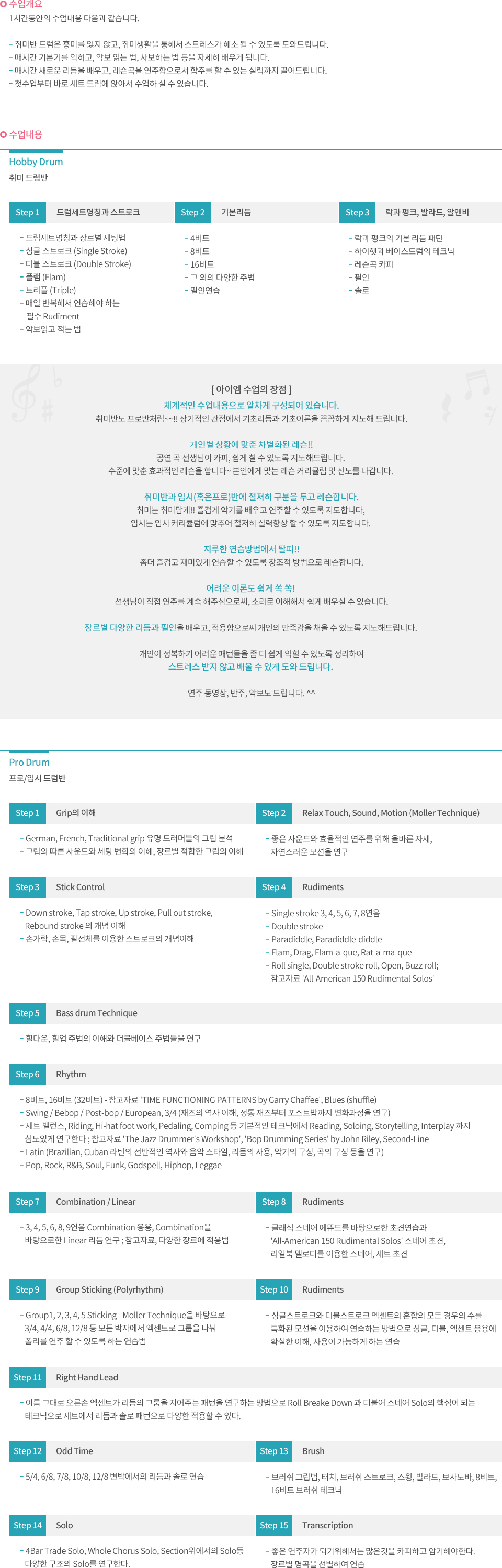 취미/입시/프로 드럼반은 모두 1:1 레슨입니다.