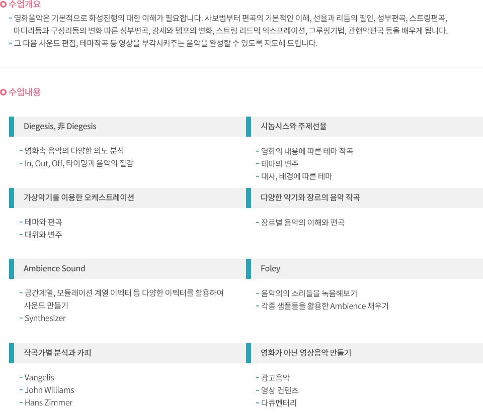 영화음악가를 꿈꾸는 분들에게 꼭 필요한 수업입니다