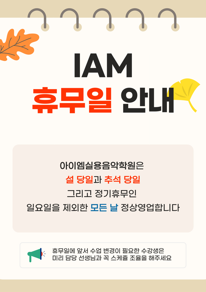 I AM 휴무일 안내