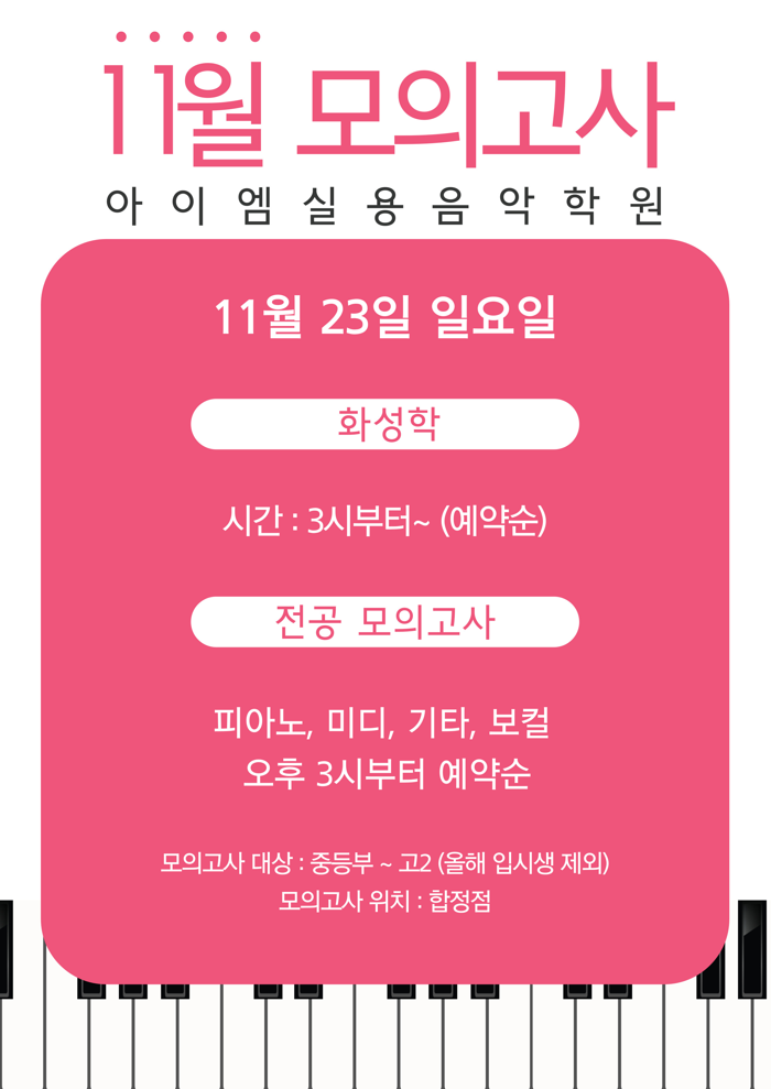 아이엠실용음악학원 11월 입시 모의고사를 진행합니다.