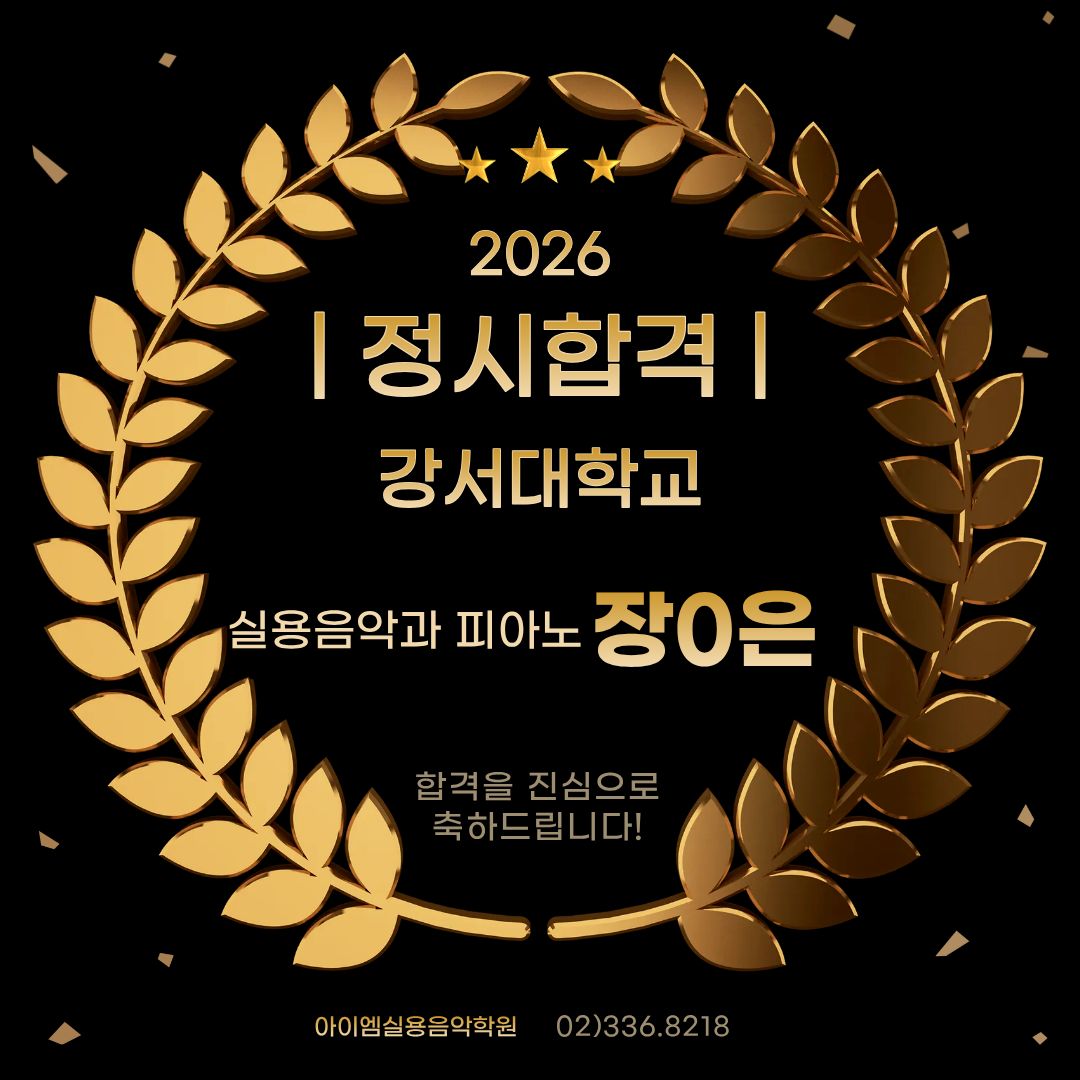 [입시합격자] 2026년도 강서대학교 정시 실용음악과 피아노 장O은 합격을 축하합니다!